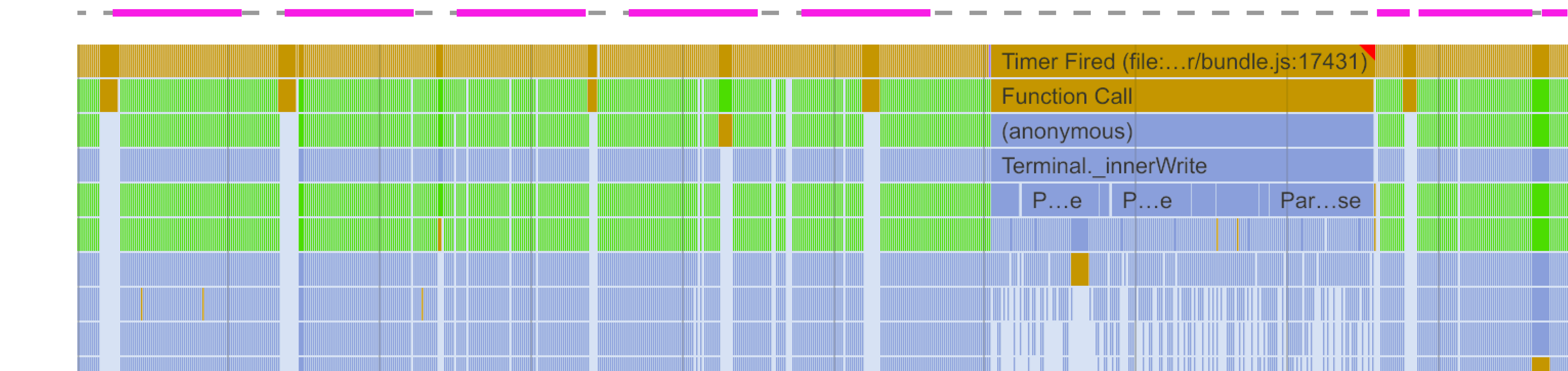 Digging within the CPU profile, we noticed that the "renderer" process was spending most of its time handling an overwhelming amount of messages coming in from the main process.